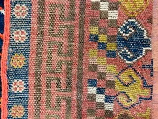 Gorgoues antique Khoton rug from East Turkistan, size 6 ft. 2 inches by13 ft, circa 1910, excellent condition with all original ends and edges on navy blue field.