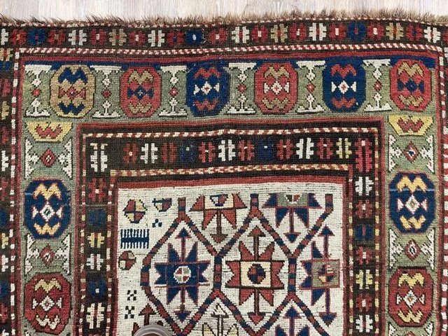 Beautiful antique Gendjeh Caucasian rug from central Caucasus; Caucasian, 3’10” x 8’ all over design on ivory field, excellent condition wit couple small older repair, complete rug with all original ends and edges.